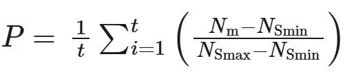 Where P is the species’ position in realized niche space assessed based on weather data over a time period of interest divided into t units (e.g. 12 if the time units are months), Nm is the environmental measurement for that area during that month, NSmax is the species’ upper realized niche limit, and NSmin is the species’ lower realized niche limit.